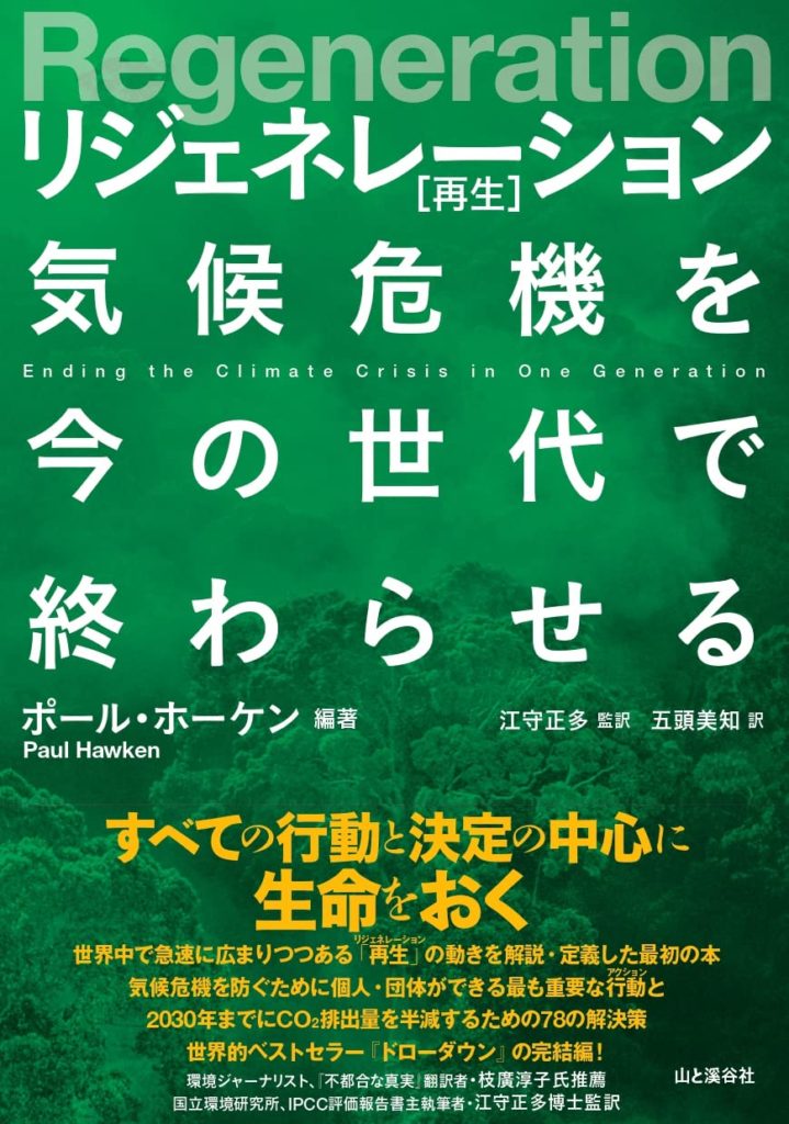 地球温暖化を解決するための100の方法を掲げた「ドローダウン」では「何が」有効なのかを示しました。2022年3月に書籍化された「Regeneration リジェネレーション 再生 気候危機を今の世代で終わらせる」では「どうすれば、個人や団体が、最短時間で、気候変動の緊急事態に最大の影響を与えることができるのか?」を紹介しています。