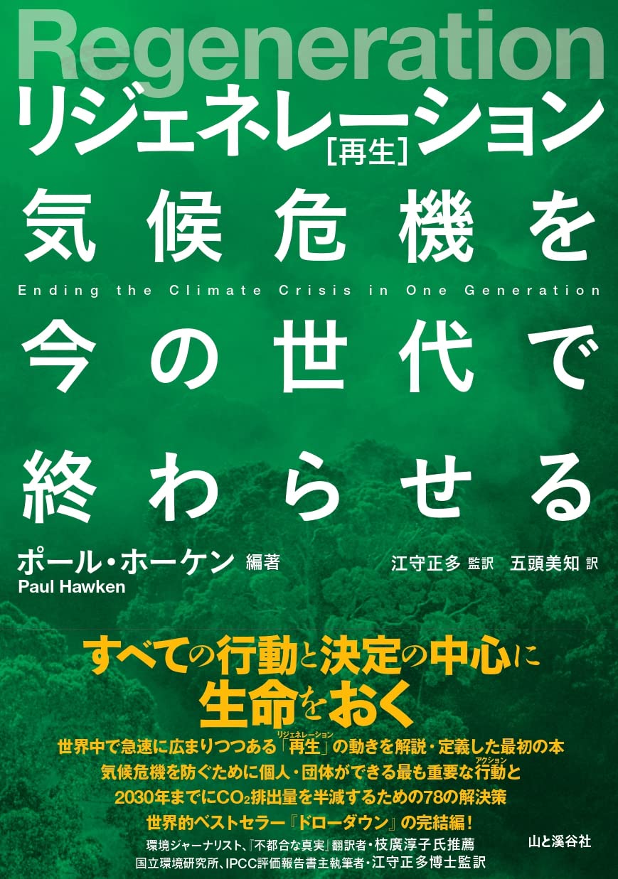 地球温暖化を解決するための100の方法を掲げた「ドローダウン」では「何が」有効なのかを示しました。今年3月に書籍化された「Regeneration リジェネレーション 再生 気候危機を今の世代で終わらせる」では、ドローダウンでは触れられていない「どうすれば、個人や団体が、最短時間で、気候変動の緊急事態に最大の影響を与えることができるのか?」を紹介しています。