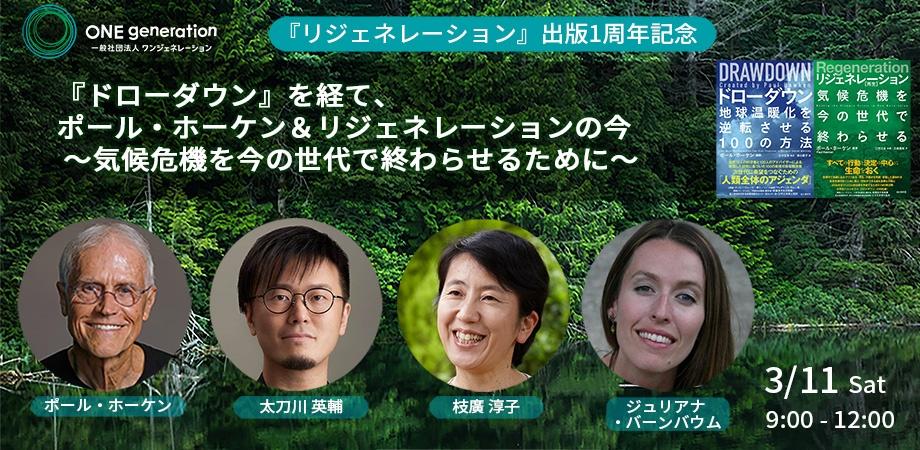 【3月11日(土)オンライン開催】『リジェネレーション』出版1周年記念:『ドローダウン』を経て、ポール・ホーケン&リジェネレーションの今 ~気候危機を今の世代で終わらせるために~(日本語通訳付)